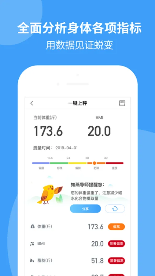 -专业数据:自动同步AsWing体脂秤、云康宝体脂秤、Yolanda体脂秤、清华同方体脂秤和乐心体脂秤,提供人体健康数据,并给出健康建议。