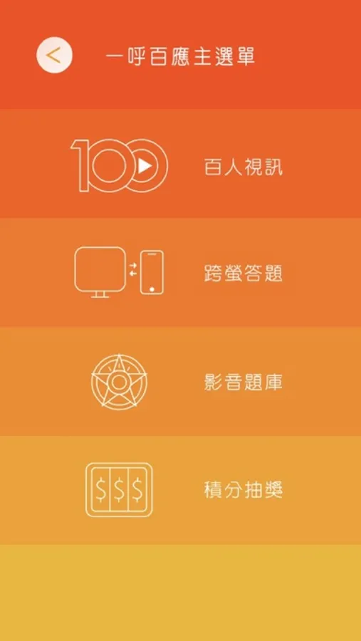 而首先推出的是以線上與實境對決為概念的大型益智節目---一呼百應,本節目將配合APP的功能,進行視訊連線以及跨螢答題等互動,創造出多螢多工的新創內容。