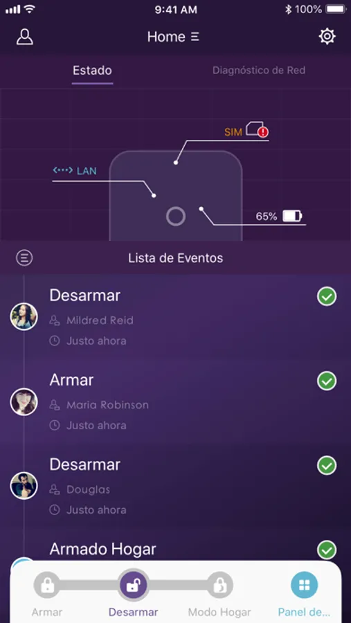 SEKUR IP app allows user to control the alarm system at any time, from anywhere, in real-time, including Arm, Disarm, Alarm (trigger SOS) or setting up the system.