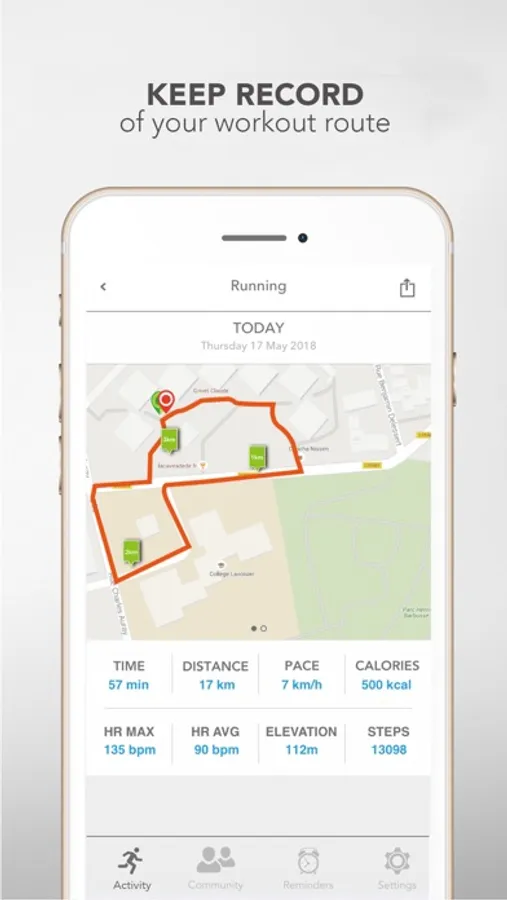 ZeSport2 precisely records your sport activities to help you track your progress anywhere. Thanks to its built-in GPS, you can easily follow your workout itinerary while exercising and keep record of your training data (distance, pace and routes) directly on ZeSport2 app.