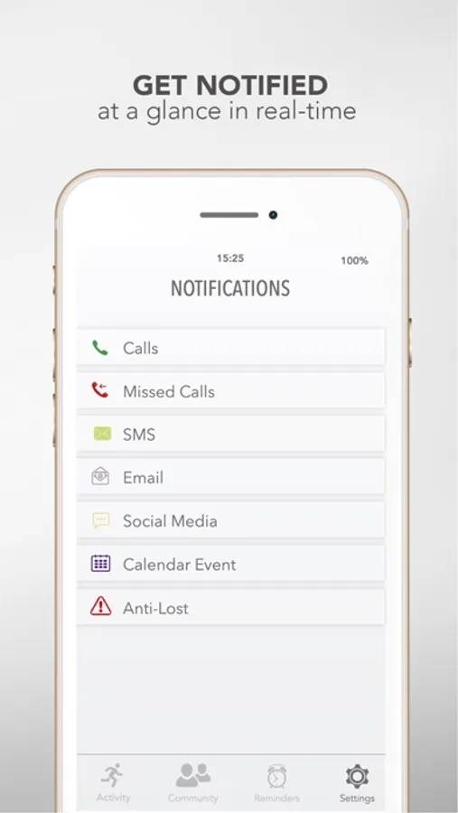 - Select notifications of your choice (incoming calls, SMS, emails, calendar events, social networks)