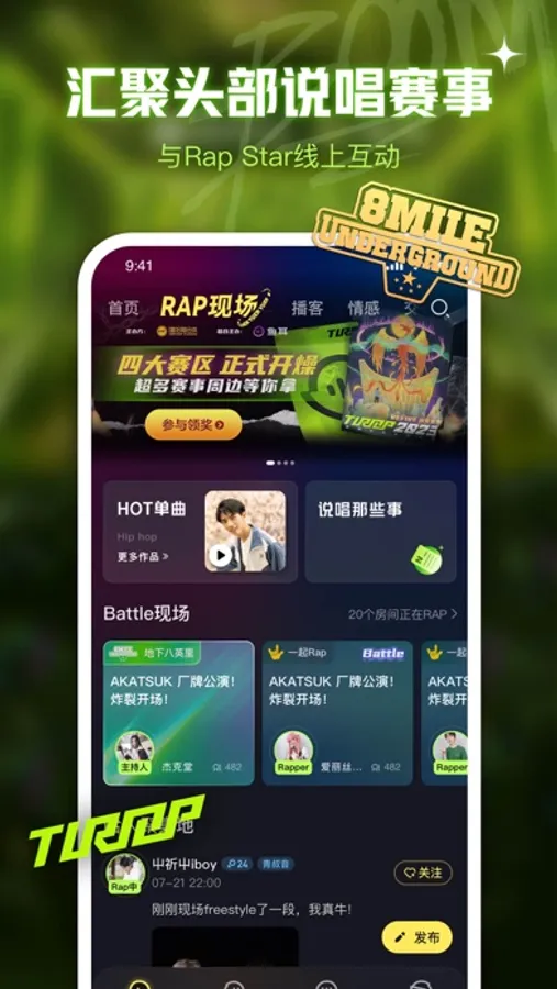 上鱼耳进入说唱专区参与报名,和更多说唱实力派一起燥,争做这个夏天最酷的Rap Star,在这里遇见未来Rapper巨星!