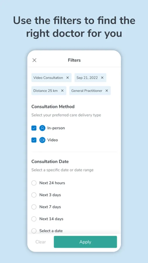 • Access the real-time availabilities of tens of thousands of healthcare professionals