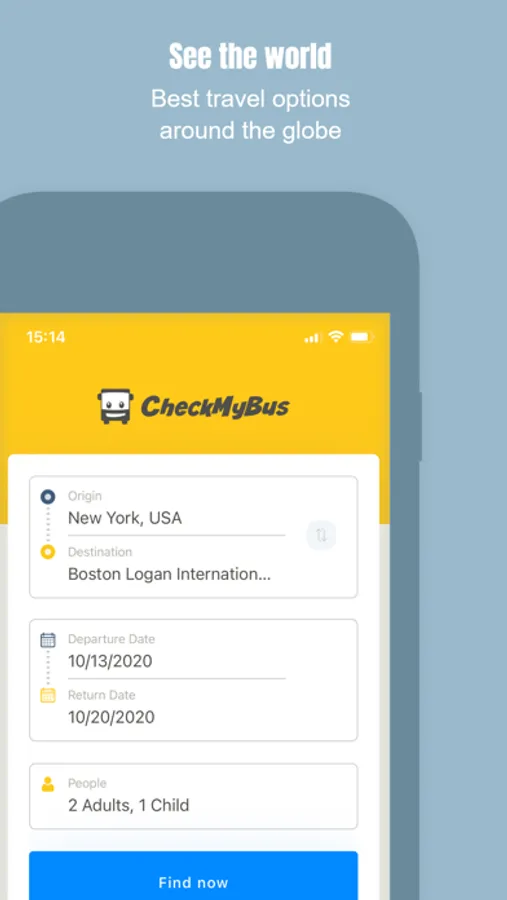 Insert the info about your trip: origin, destination and departure date. Add a return date if you already know when you will travel back. Travelling as a group? Select the number of adults or children coming with you. When you are set, click on “Find now” to see all the possible connections between the two cities.