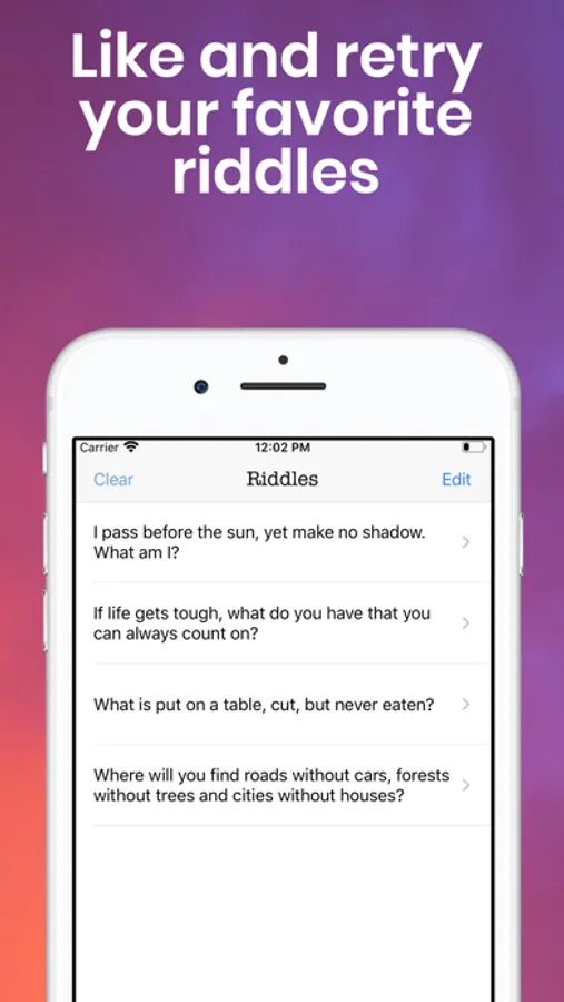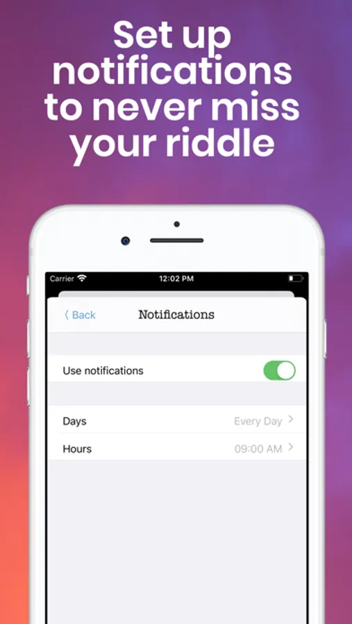 • Don't worry about being busy, you can setup notifications to suit your needs. You'll never miss your daily riddle.