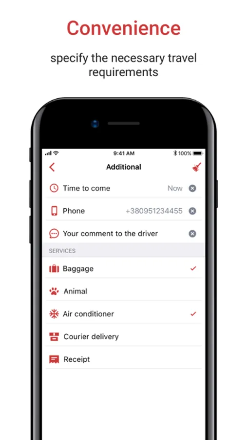 - возможность выбрать дополнительные услуги: кондиционер, курьер, багаж, животное