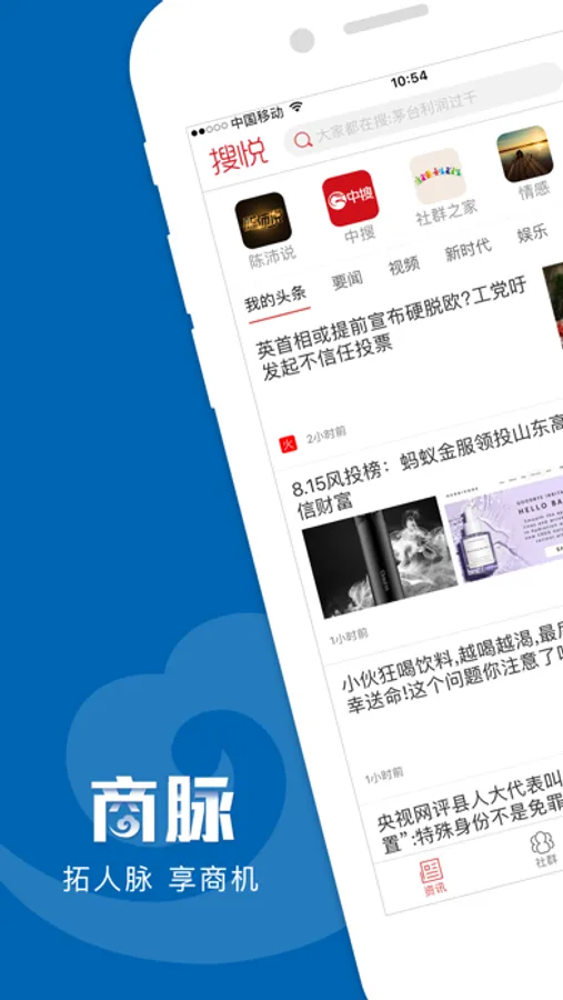 商脉APP是社群及组织入驻的工具平台,在这里总能找到适合您的组织,获得商业机会、寻找商业伙伴、结识高端人脉...点滴陪伴您的成功历程,与精英人士结伴同行!