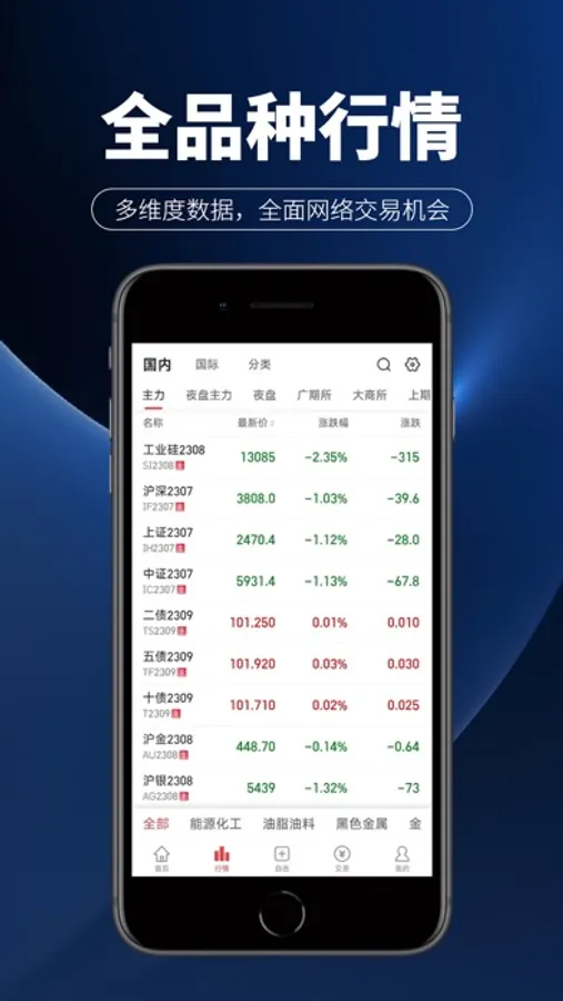 - 提供原油、黄金等国内上市的所有期货品种交易行情;