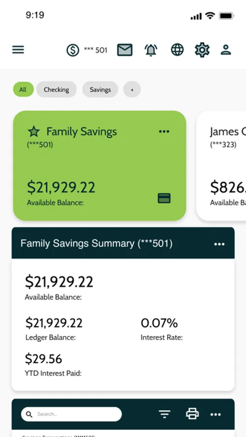 • Quickly check balances and view transactions for all of your accounts.