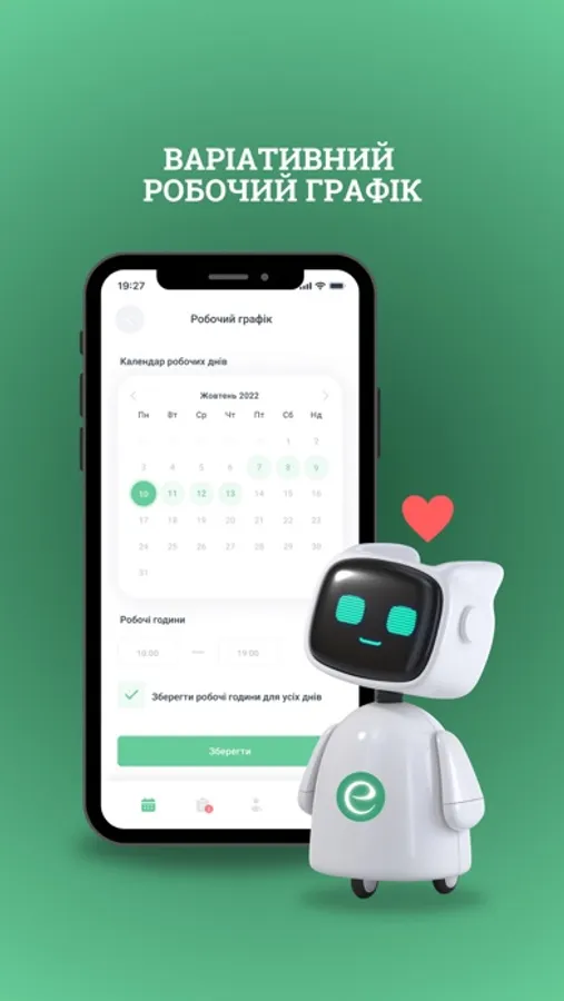 - редагування робочого графіку усіх працівників одразу із застосунку;