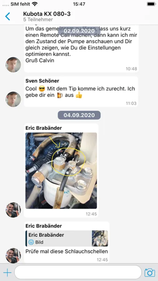 Are you stuck with a specific problem on a machine? Ask your questions in the group or direct them to experienced colleagues. With the help of our chat function, exchange information easily. In addition to specifying the machine type and other relevant data, the integrated image processing, share videos and documents and the feedback function help avoid misunderstandings and find the right solution more quickly. The result: stress reduction, especially when prior unknown problems occur on site with the customer.
