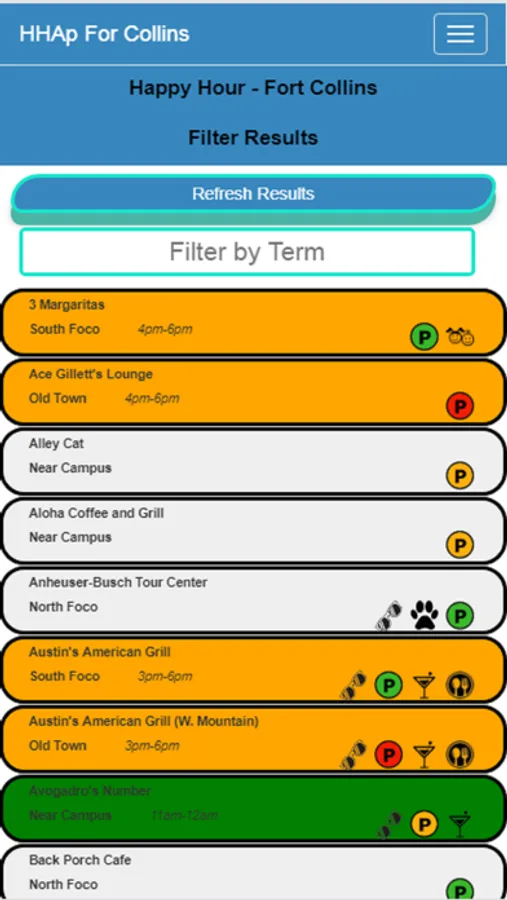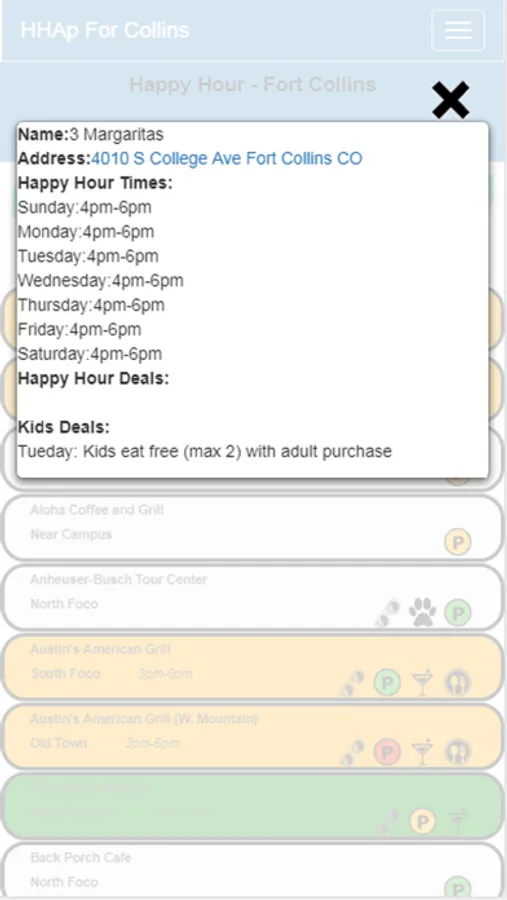 HHAp - Fort Collins (the Happy Hour App) is a one stop location for finding food and drink deals in the Fort Collins area. You can sort results by factors such as happy hour times, ease of parking, pet friendly, and options for outdoor seating. New Feature! Search by locations which offer discounts on kids meals!