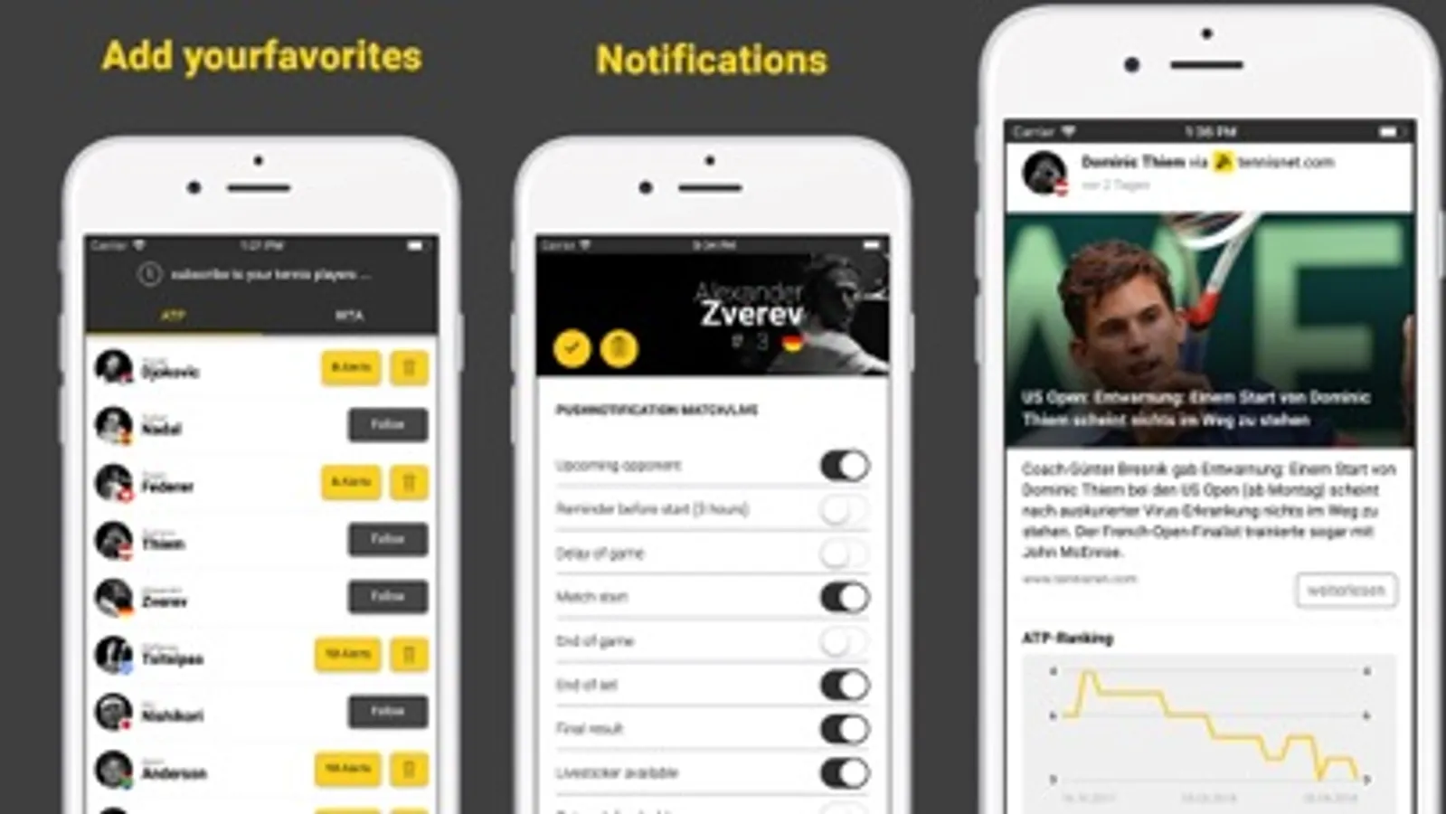 Because of the Livesticker/Live-Score your are up to date when your tennis players like Roger Federer, Rafael Nadal, Alexander Zverev, Dominic Thiem or Novak Djokovic are on the court.