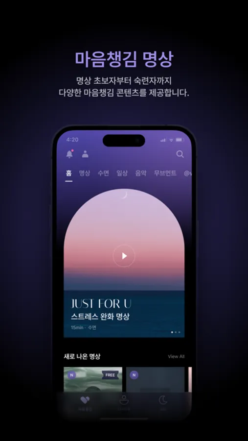 나이, 직업, 성별, 명상 경험에 관계 없이 누구든 쉽게 사용할 수 있어요. 명상이 처음이어도 괜찮아요. 단계별 맞춤명상 콘텐츠가 제공됩니다.