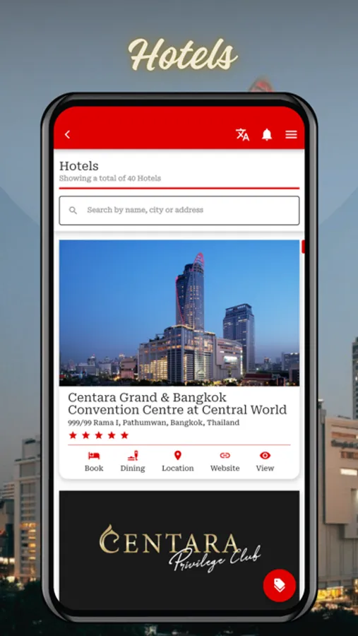 The Centara Privilege Club app allows you to: