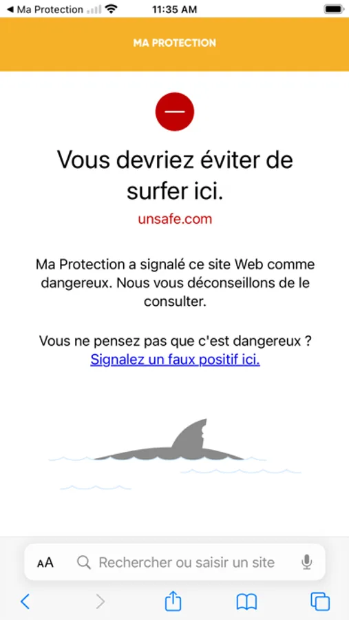 L’accès aux sites Web malveillants est bloqué grâce à l’extension de navigation sur Safari. La protection de la navigation vous avertit si des pages Web sont suspectes et bloque les sites frauduleux.