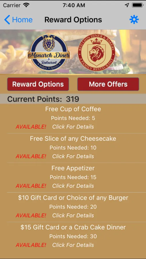 The Lion Rewards mobile app delivers offers and loyalty information to on-the-go customers, giving quick access to exclusive deals, enrollment options, loyalty point balance and rewards lookup, loyalty program information, and information about our business