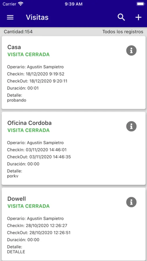 Ideal para el control de horarios de tu empresa. Vas a poder definir lugares habituales a visitar y horarios de trabajo de cada uno de tus operarios. Toda la información recolectada en las visitas puede ser exportada para liquidar sueldos.