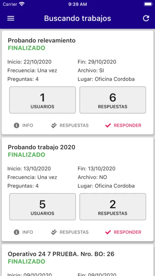 Gestiona todos los trabajos de tus operarios. Puedes incluir imagenes, archivos pdf, diseñar formularios a medidas de tus necesidades y compartirlos a tus operarios. Al finalizar puedes calificarlos!