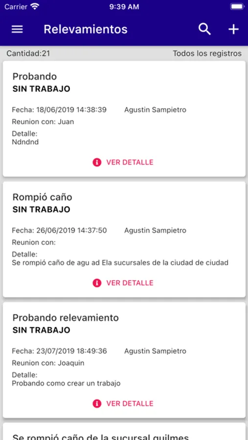 Todos los operarios de tu empresa van a poder relevar información en terreno sin previa planificación. Cada relevamiento puede o no generar un futuro trabajo. Tambien cuenta con la posibilidad de adjuntar imagenes de lo relevado.