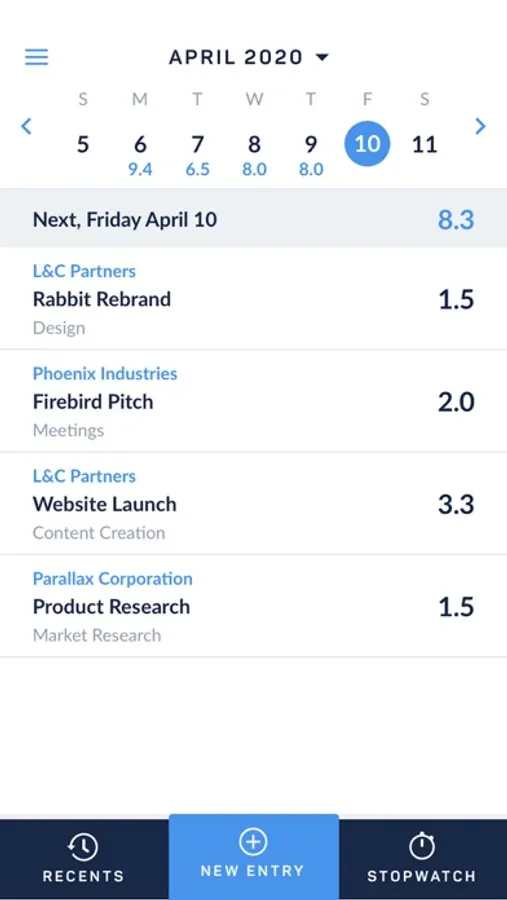 - Choose your time entry method: hour entry, start & end times, or stopwatch