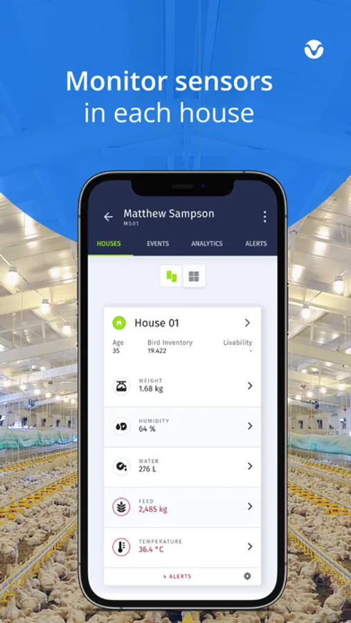 Automated barn data collection enabling environment and bird health to be monitored to the minute, while also trending daily animal performance versus standards.