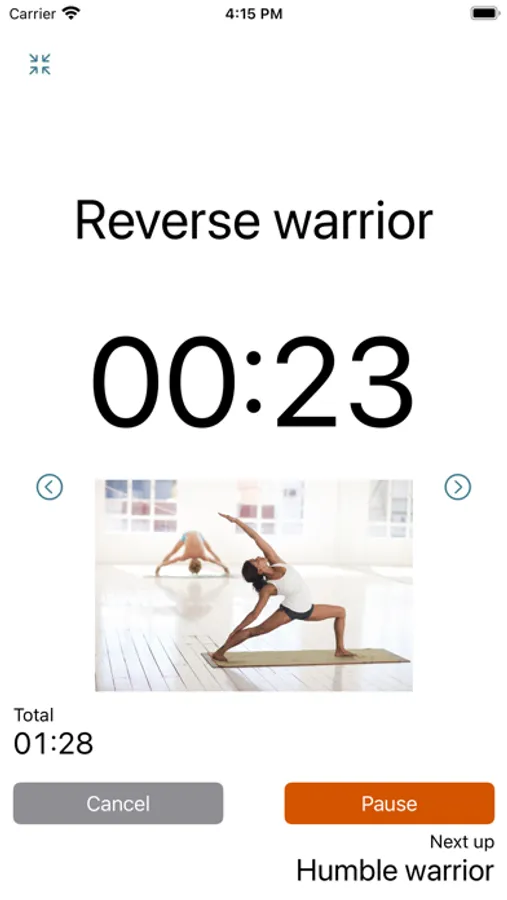 View countdown of each interval and total remaining time, with an option to display total elapsed time.