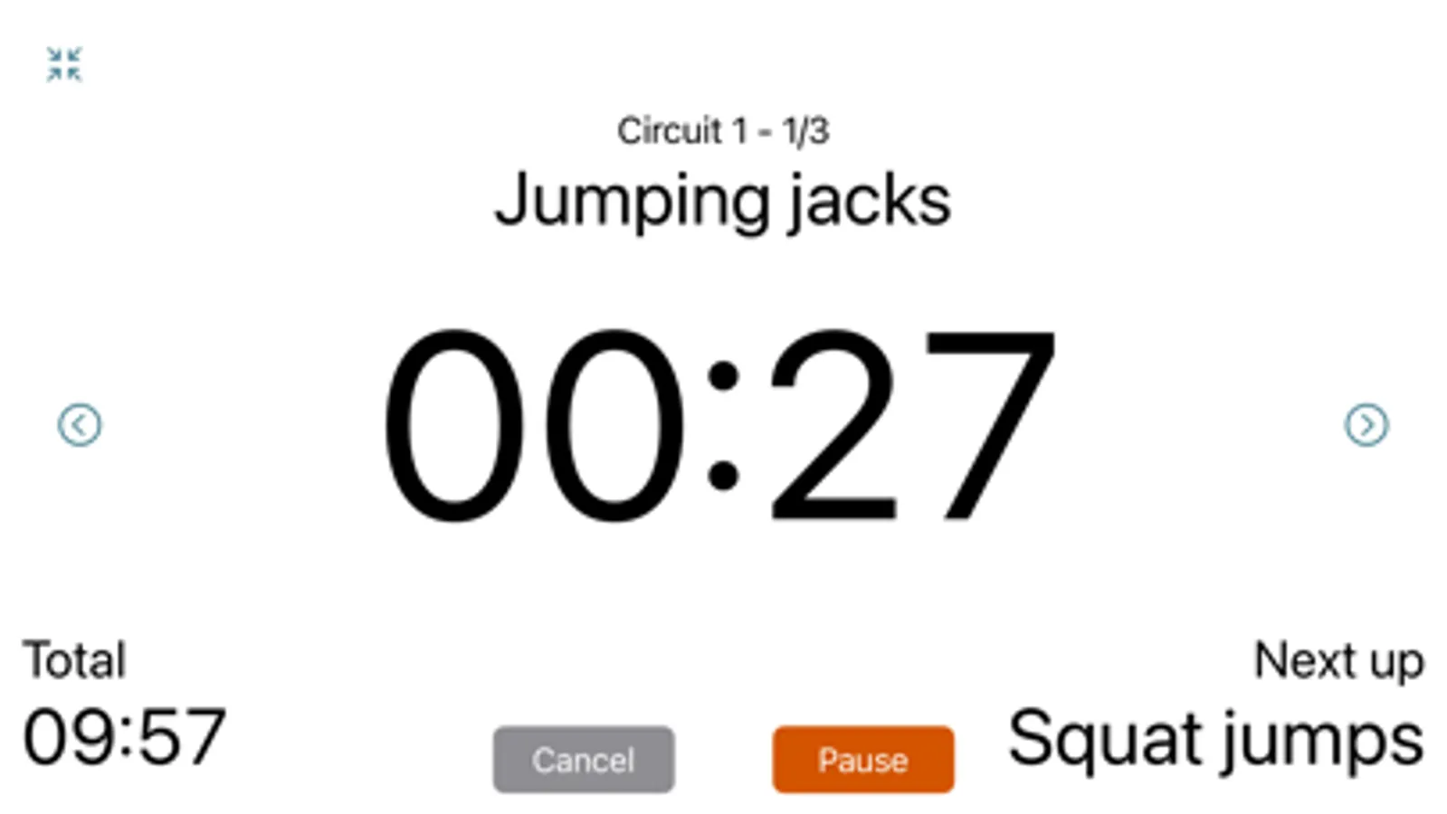 Set an interim intervals that will automatically be added between intervals. Optionally, end your timer with the interim interval. Skip or backtrack through intervals using intuitive arrow buttons. Swipe actions allow for easy deletion and duplication of intervals and sets.