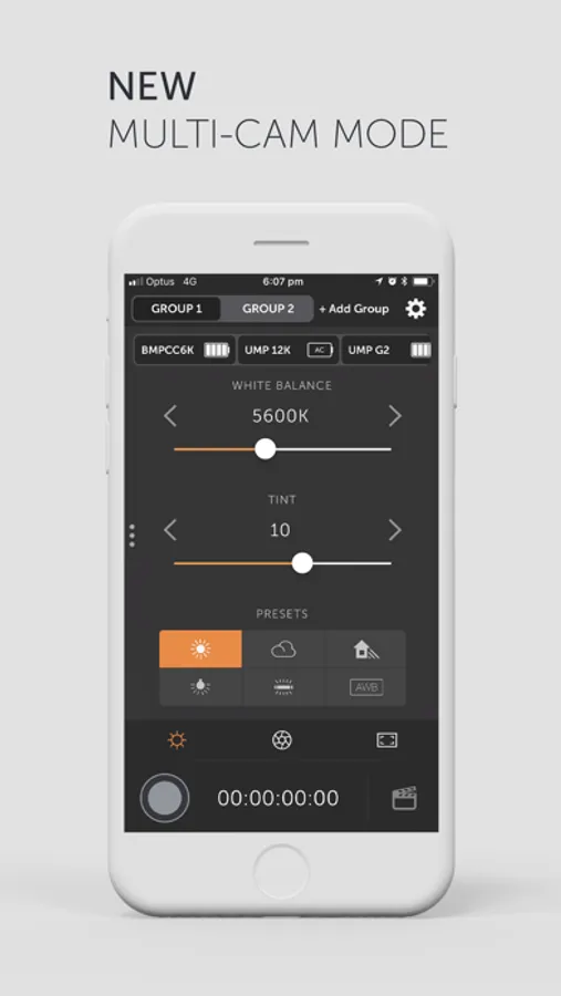 • Create up to 3 distinct Control Groups, to give you fine-grain control over different settings for different cameras