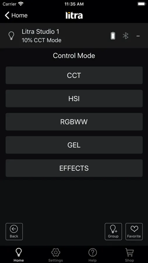 - Select mode from CCT, HSI, RGBWW, Flash, Special Effects and Flash
