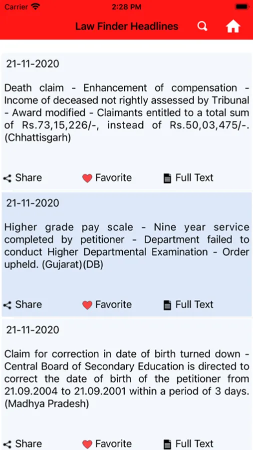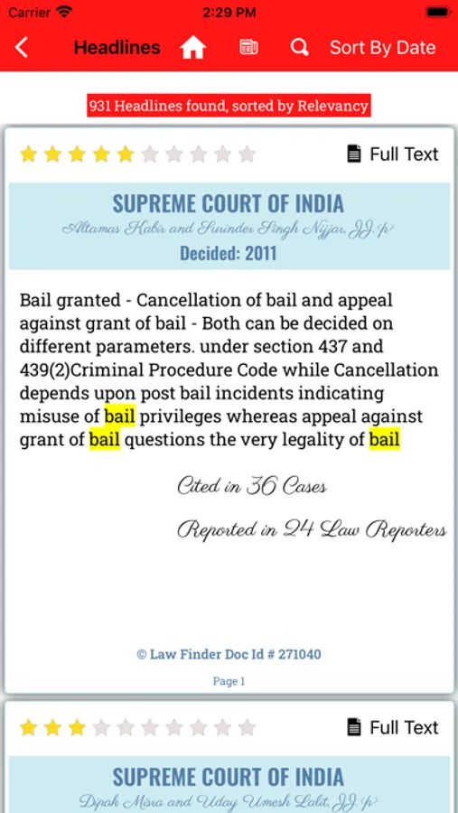 Every day hundreds of new cases are added to "Law Finder". All the new cases can not be brought to your notice, so we select a few randomly to show you in the Law Finder Headlines