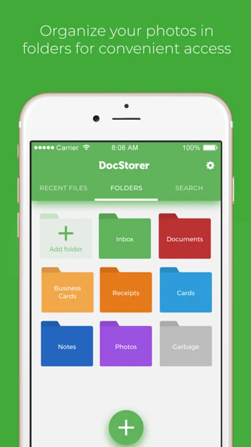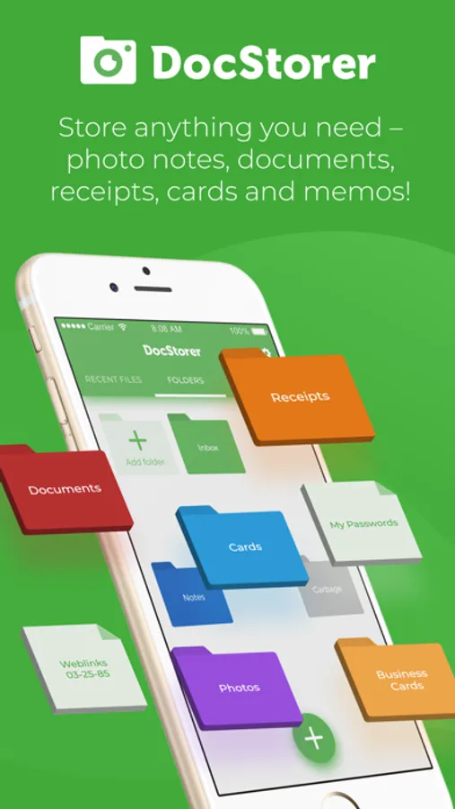 DocStorer is a photo keeping app that creates a protected digital archive of your personal files, including documents, notes, cards, and receipts. Take a photo of paper files or upload digital files, and sort in file folders for maximum convenience.