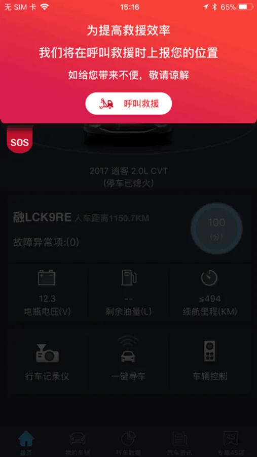 -故障码提醒:当行车途中遇到车辆故障,或车辆出现疑似问题,首先可以检查是否存在故障码并督促车主尽快联系附近的4S店,以期及时得到服务