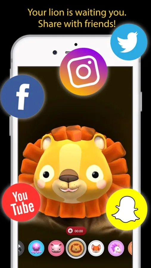 Record your face and your emotions to awesome 3D models - Unicorn, Panda, Horse, White Bear, Crocodile, Beaver, Leopard, Tiger, Bunny, Bat, Squirrel, Mole, Owl, Opossum, Porcupine, Raccoon, Shark, Lizard, Skunk, Turtle, Wolf and Baby. Also new 3D emoticons are available: Fun, Sleep, Cry, Cool, Angry, Love, Surprised, Angel.