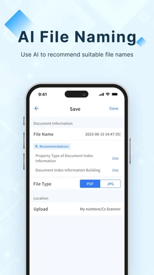 • Smart recognition of document content, naming files based on themes, dates, and other key information