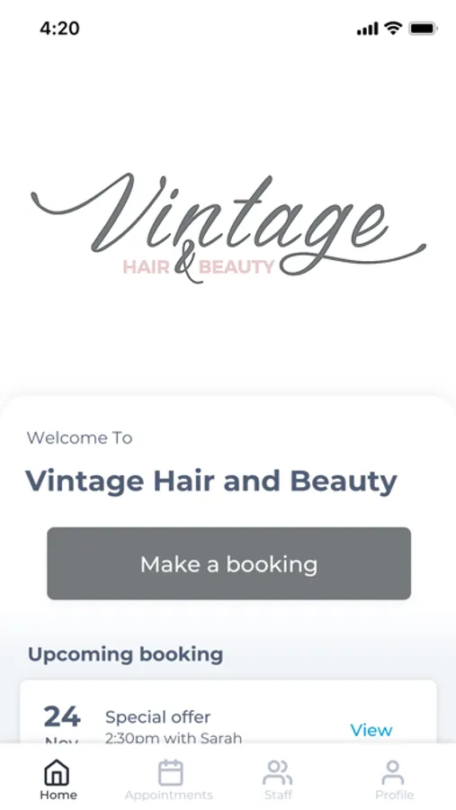 The Vintage Hair and Beauty app makes booking your appointments and managing your loyalty points even easier. You're just a few taps away from feeling good and looking great!