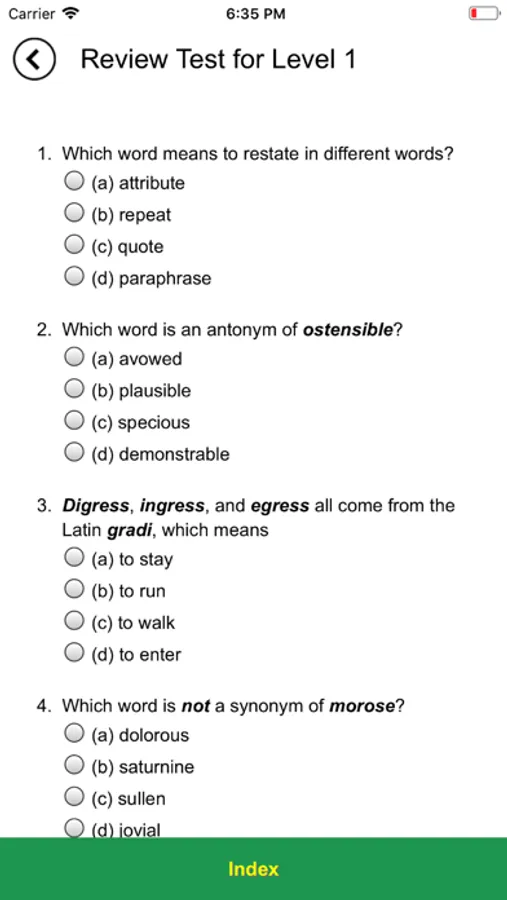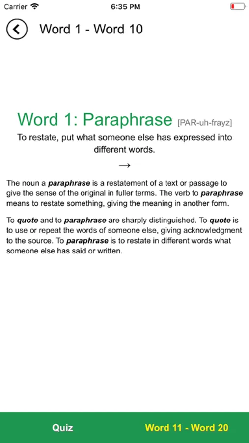 You will proceed through ten levels of vocabulary, each level more challenging than the last. For example, Level 1 contains words familiar to about 60 to 70 percent of adults—that is, words known to many high school graduates and most college graduates. By the end of Level 5 you will have raised your vocabulary to about the 75th percentile—the top quarter of all educated adults. By the end of Level 8 your vocabulary will have surpassed that of most executives and professionals, including those with advanced degrees. And when you complete the tenth and final level you will have progressed beyond 95 percent of the entire population. You will command an armory of words that only a handful of people in every thousand can match.