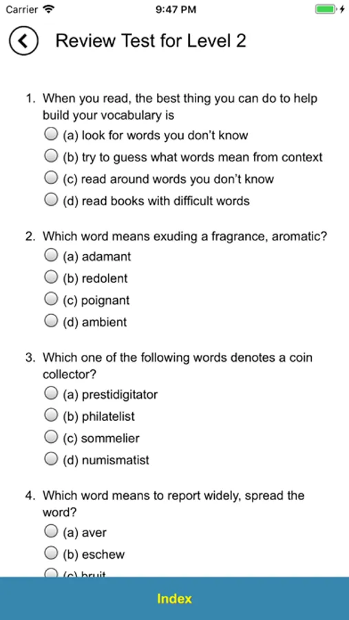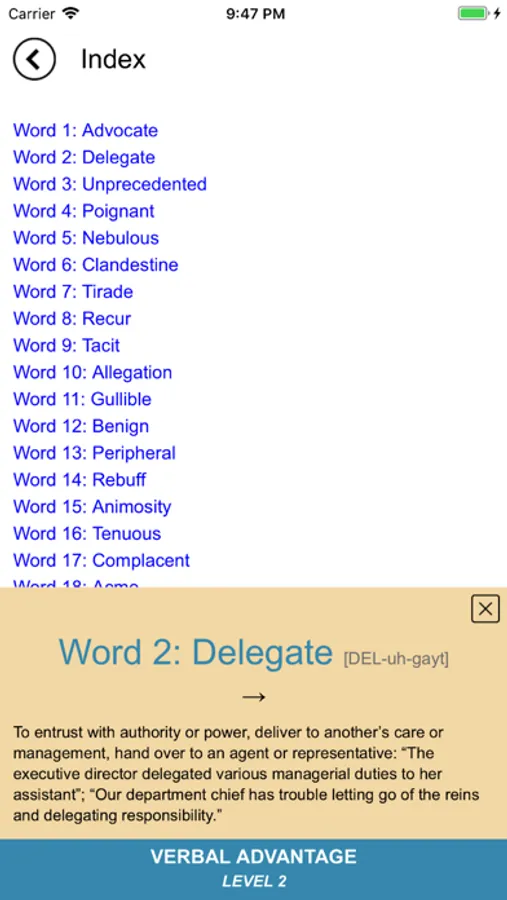 You will proceed through ten levels of vocabulary, each level more challenging than the last. For example, Level 1 contains words familiar to about 60 to 70 percent of adults—that is, words known to many high school graduates and most college graduates. By the end of Level 5 you will have raised your vocabulary to about the 75th percentile—the top quarter of all educated adults. By the end of Level 8 your vocabulary will have surpassed that of most executives and professionals, including those with advanced degrees. And when you complete the tenth and final level you will have progressed beyond 95 percent of the entire population. You will command an armory of words that only a handful of people in every thousand can match.
