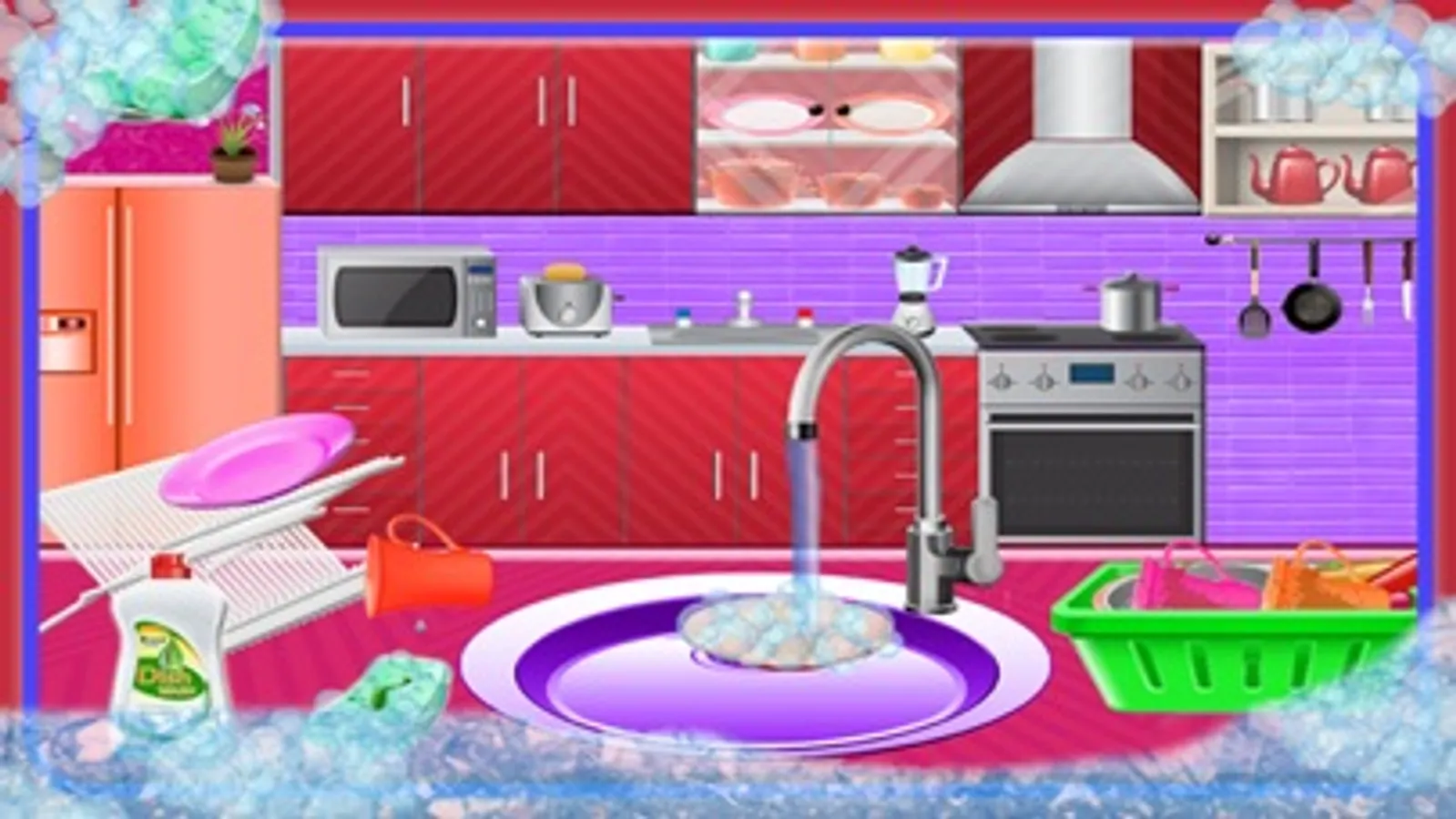 So party is over now, it’s time to wash dishes from your dish washer. Help your mommy to wash the dirty dishes, spoons, cups, plates. Your mom is tired and you have to help your mom on this matter. Dishes, pots are dirty and now it’s your responsibility to clean it up. So what would you do? Cleaning dishes to make your mom happy, mostly girls do this task but boys you can also help your mom to clean dirty things. Not only our dishes are unclean but our kitchen as well, first we have to clean our kitchen remove dirt, pick garbage and throw it in dustbin. So you can easily clean dishes. So basically this game is mostly for girls so they can learn about the cleaning and washing dishes, cups, plates. This dish washing game is fun