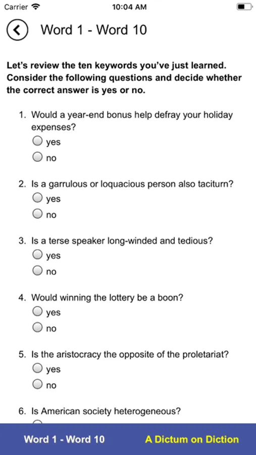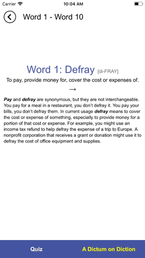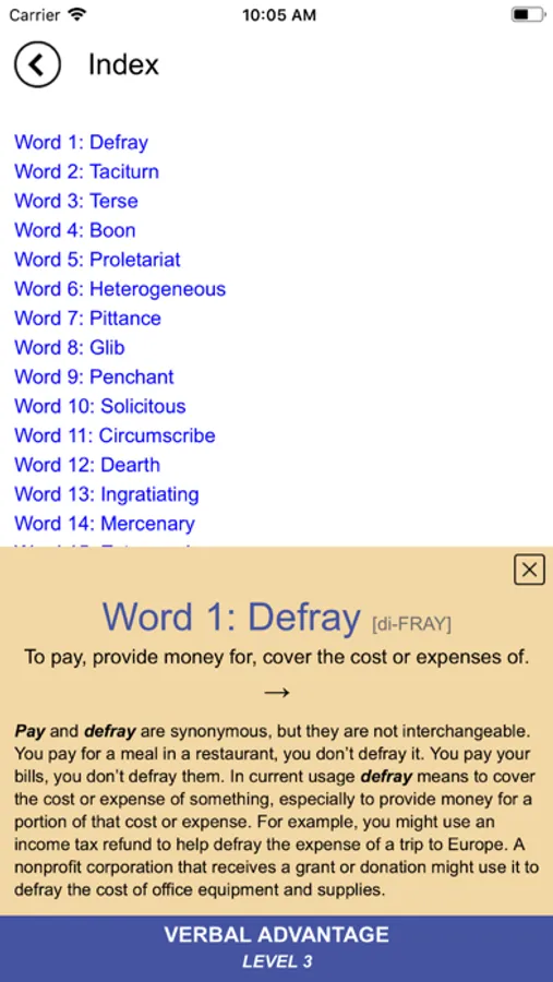 You will proceed through ten levels of vocabulary, each level more challenging than the last. For example, Level 1 contains words familiar to about 60 to 70 percent of adults—that is, words known to many high school graduates and most college graduates. By the end of Level 5 you will have raised your vocabulary to about the 75th percentile—the top quarter of all educated adults. By the end of Level 8 your vocabulary will have surpassed that of most executives and professionals, including those with advanced degrees. And when you complete the tenth and final level you will have progressed beyond 95 percent of the entire population. You will command an armory of words that only a handful of people in every thousand can match.