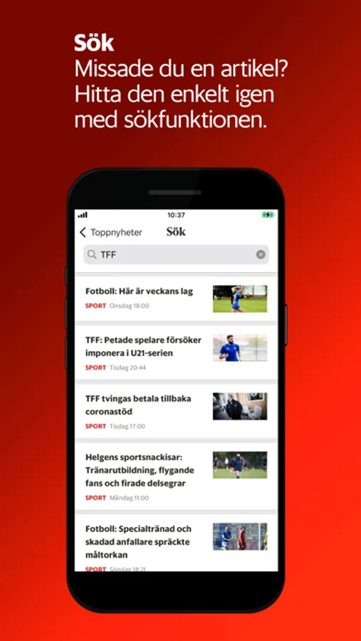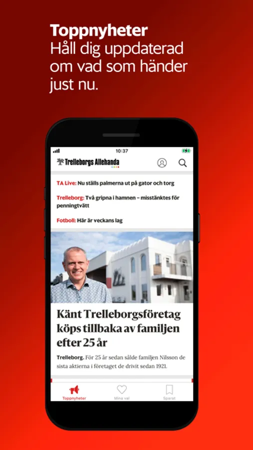 Toppnyheter är det nyhetsflödet i appen som är mest likt det du är van vid från nyhetssajten. Det innehåll du ser här är det senaste som har hänt och det som redaktionen anser vara viktigast just nu.