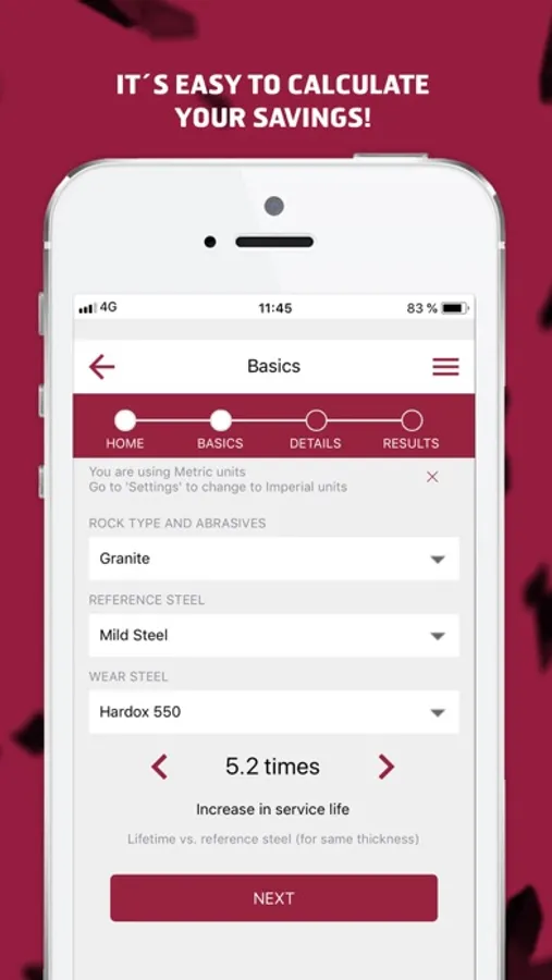 The Hardox® WearCalc app is available in 17 languages: English, Finnish, French, Dutch, Swedish, Czech, Hungarian, Russian, Polish, German, Italian, Chinese, Korean, Japanese, Brazilian Portuguese, Spanish and Turkish.