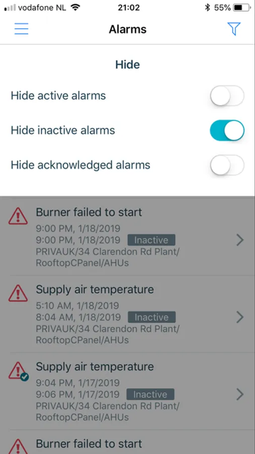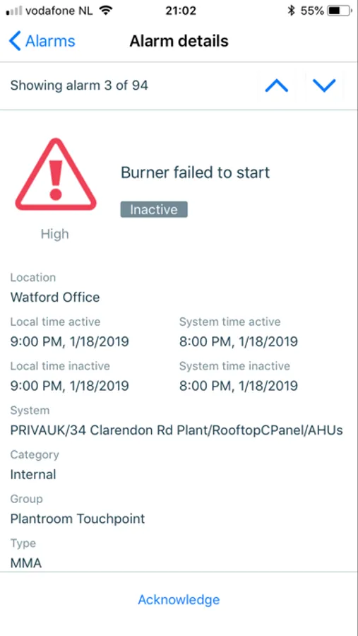 With Priva Alarms you can also acknowledge alarms.