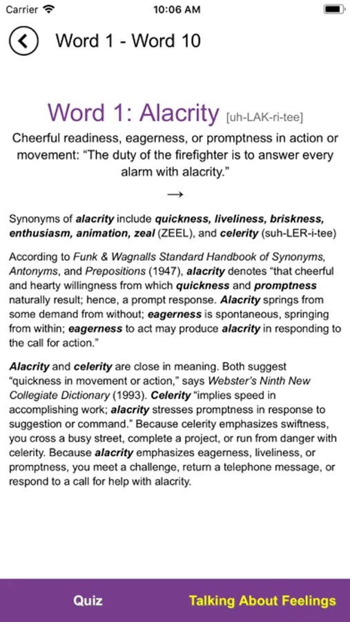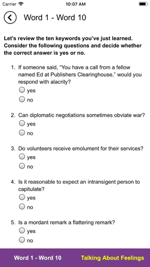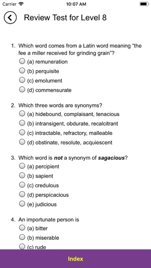 You will proceed through ten levels of vocabulary, each level more challenging than the last. For example, Level 1 contains words familiar to about 60 to 70 percent of adults—that is, words known to many high school graduates and most college graduates. By the end of Level 5 you will have raised your vocabulary to about the 75th percentile—the top quarter of all educated adults. By the end of Level 8 your vocabulary will have surpassed that of most executives and professionals, including those with advanced degrees. And when you complete the tenth and final level you will have progressed beyond 95 percent of the entire population. You will command an armory of words that only a handful of people in every thousand can match.