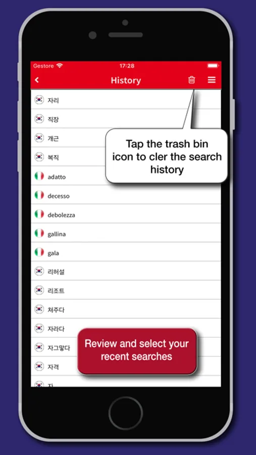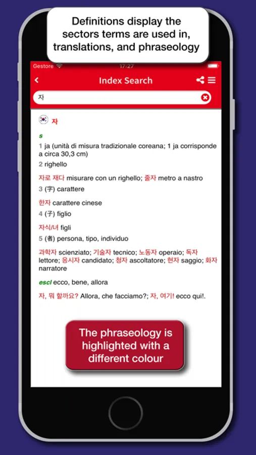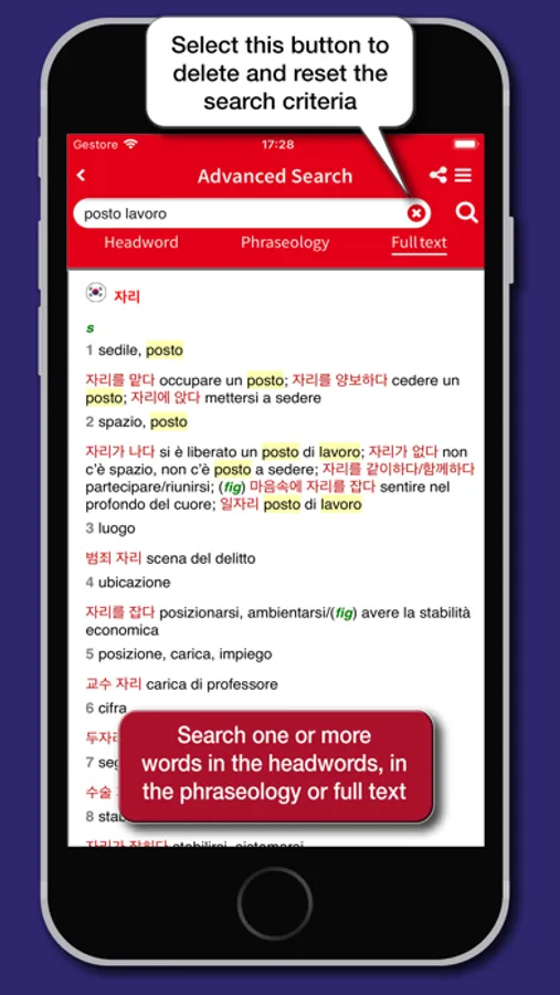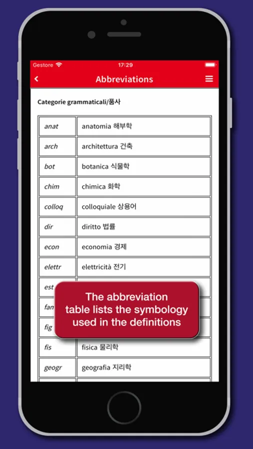 This app provides the Hoepli edition of the Korean-Italian/Italian- Korean Dictionary from Antonietta Lucia Bruno, Imsuk Jung, and Oenjoung Kim. With over 24,000 headwords graphically displayed in a clear and immediate way, the dictionary is characterized by a rich and updated content, making it a user-friendly and high-quality dictionary, a step higher than other dictionaries of the same category.