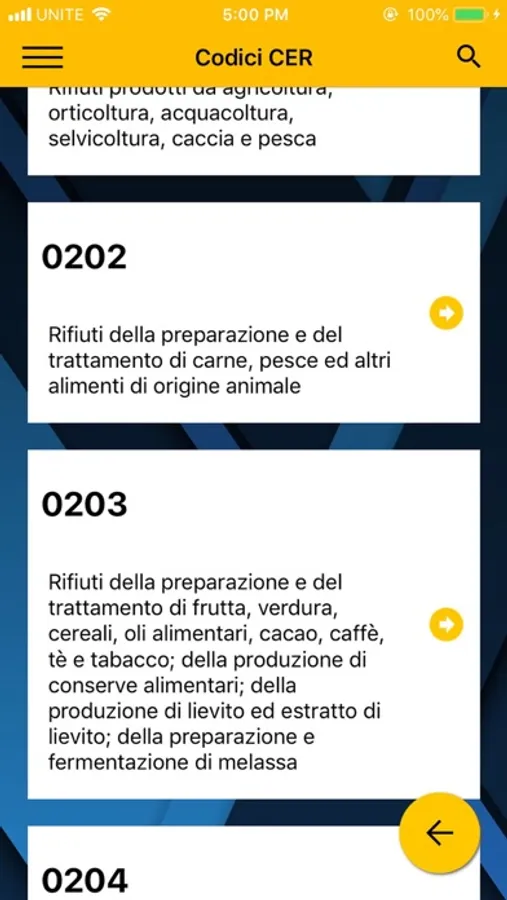 • Consultare l’elenco dei codici CER, suddivisi in famiglie (Es. 01 00 00), sotto-famiglie (Es. 01 04 00) e codici finali (Es. 01 04 13). E' prevista inoltre la possibilità di effettuare ricerche per codice e descrizione dei CER.