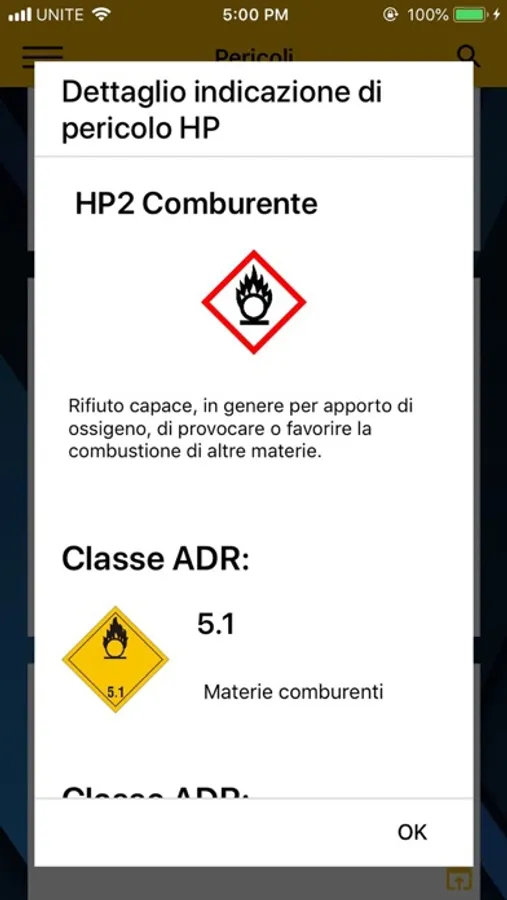 • Consultare l’elenco delle indicazioni di pericolo “HP”. Per ogni tipologia di pericolo è presente il suo codice, il nome, l’etichetta, la descrizione completa e la classe ADR ad esso collegata. E’ inoltre possibile effettuare ricerche per codice e descrizione direttamente dalla lista dei pericoli.