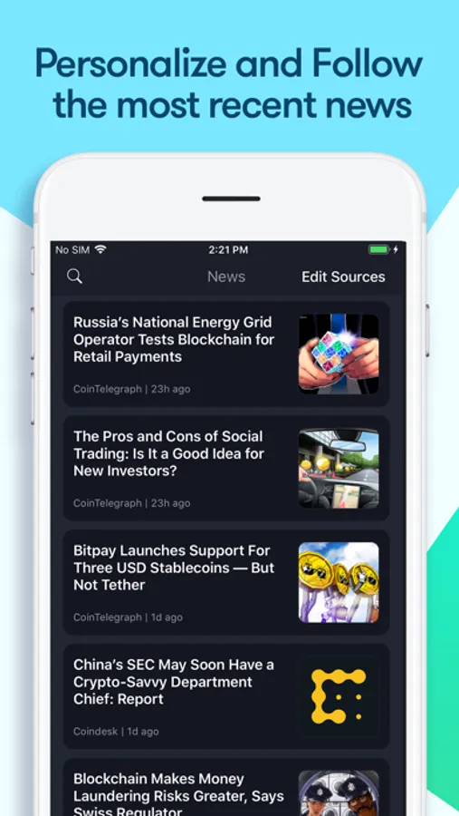 Stay up-to-date with the latest crypto news from CoinDesk, CoinTelegraph, CryptoGlobe, and more top news publishers in your personalized news feed. Add and remove sources with just one click.