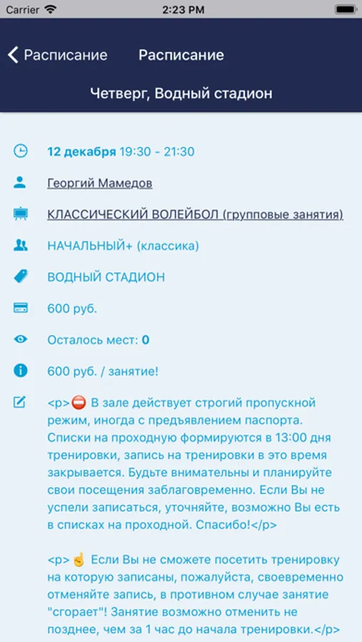 Приложение упрощает организацию тренировочного процесса для игроков в Школе волейбола, чтобы игроки время и усилия тратили на обучение и игры, а не на организационные вопросы.