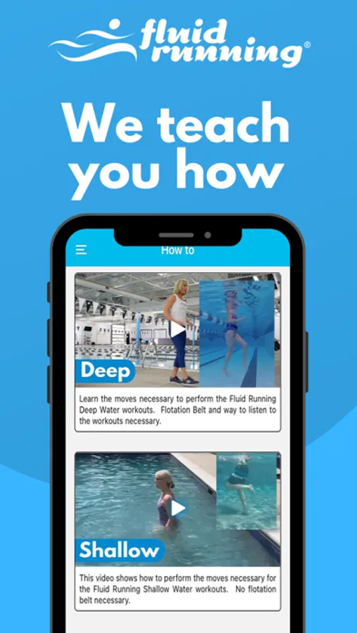 - Learn movements for Fluid Running Deep and Shallow Water Workouts